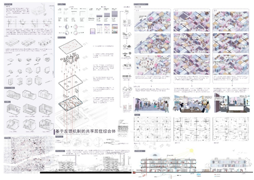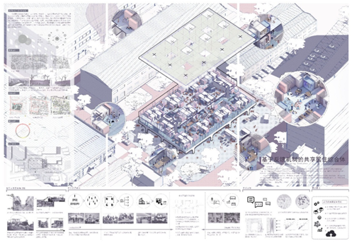 二等奖获奖作品以反馈机制为切入点,借助日常共享数据收集和大数据分析整合技术,实时制定最佳共享方案,高效利用社区闲置空间;并以模块化和移动化的设计保证空间灵活性、多样性得以实现。这一设计概念顺应了数字时代潮流,充分利用了大数据技术,表达了对社区问题的理解和责任感,获得了评委的高度认可和一致赞扬。