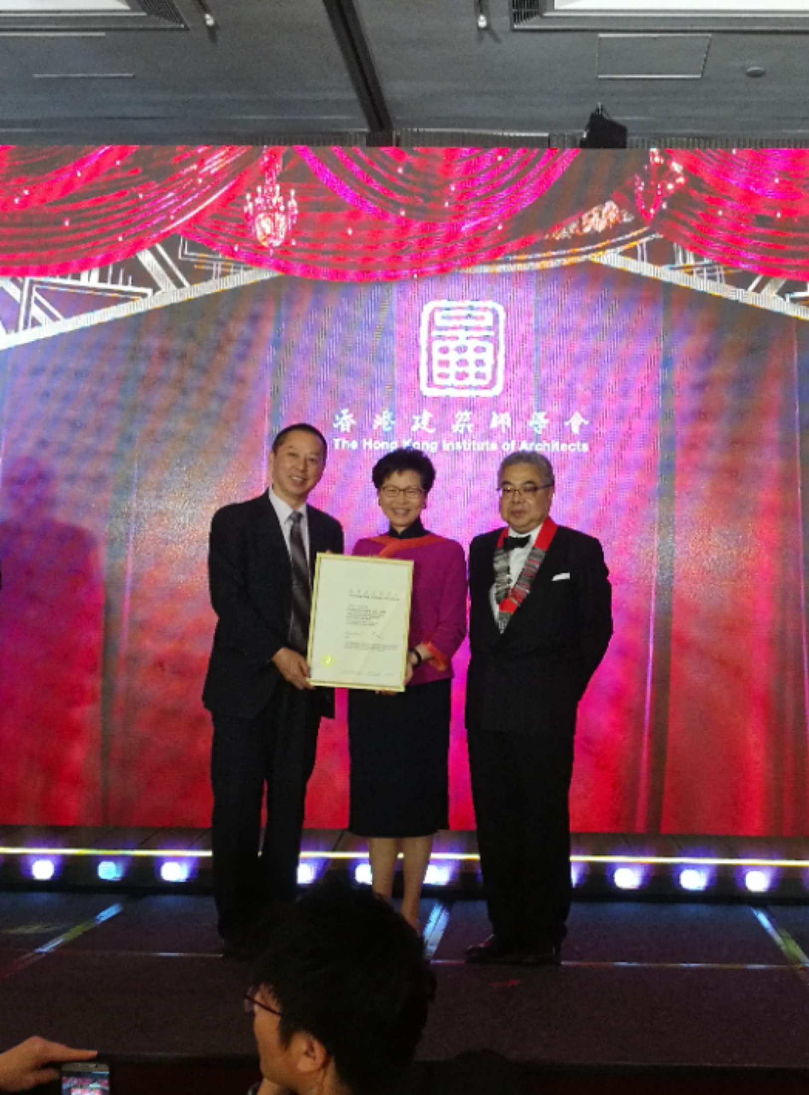2018年11月3日,在香港建筑师协会与浪live 合作27年之际,我院退休教师沈粤(国家一级注册建筑师,APEC国际注册建筑师,香港内地互认注册建筑师培训专家,香港建筑学专业评估专家,广东省建筑学专业高评委专家)在《香港建筑师学会周年晚宴》会上,由香港特别行政区特首林郑月娥女士亲自颁发“荣誉资深会员”证书。