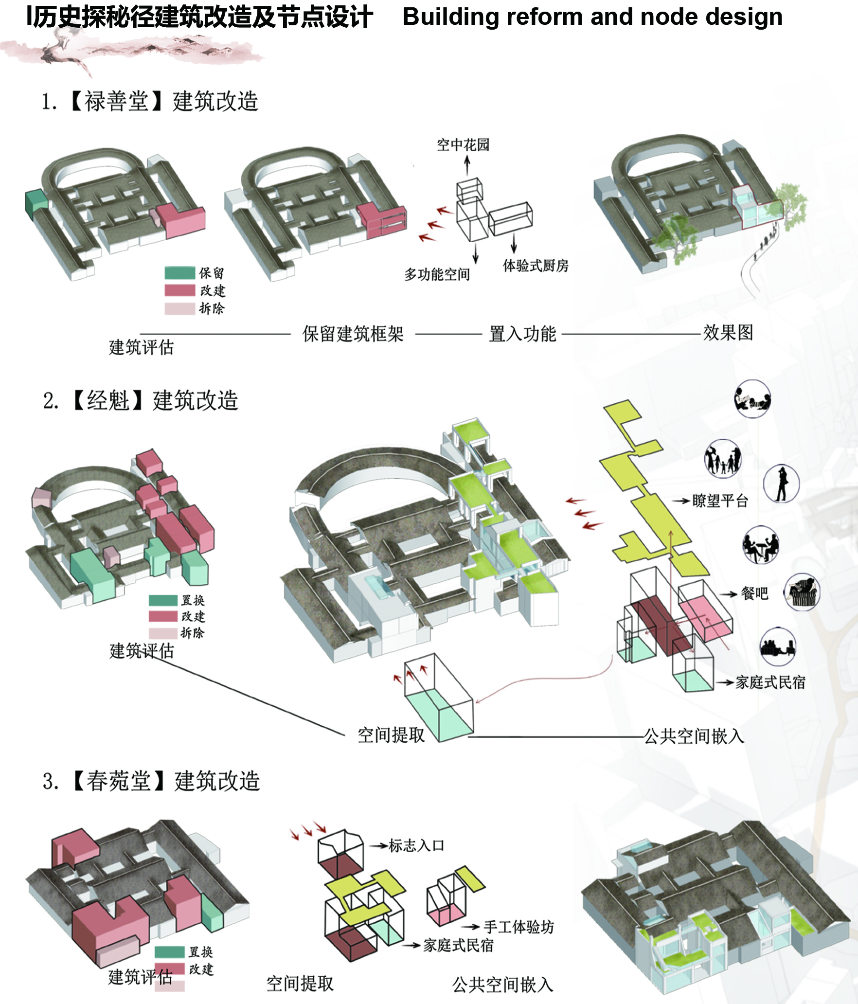 该作品为我院2013级规划系学生麦桦倬、刘钰琪、胡国兰、黄莉、钱欣、冯宁珺、陈华辉小组的作品,也是我院延续多年的“南粤杯6+1联合毕业设计”作品。其设计主题为“客·家·情”:以广东省梅州市历史城区保护与更新规划为题。规划区位于梅州市梅江北部的历史城区,要求设计队伍在概念规划方面要基于梅州历史城区自身优势,处理好“三个关系”:一是整个历史城区的生态、生产、生活空间之间的关系;二是新老城区统筹的关系;三是旅游、文化、工业、居住之间的关系。同时,在历史城区概念规划的基础上,以详细设计为手段,对历史城区的三个重点片区进行详细设计。