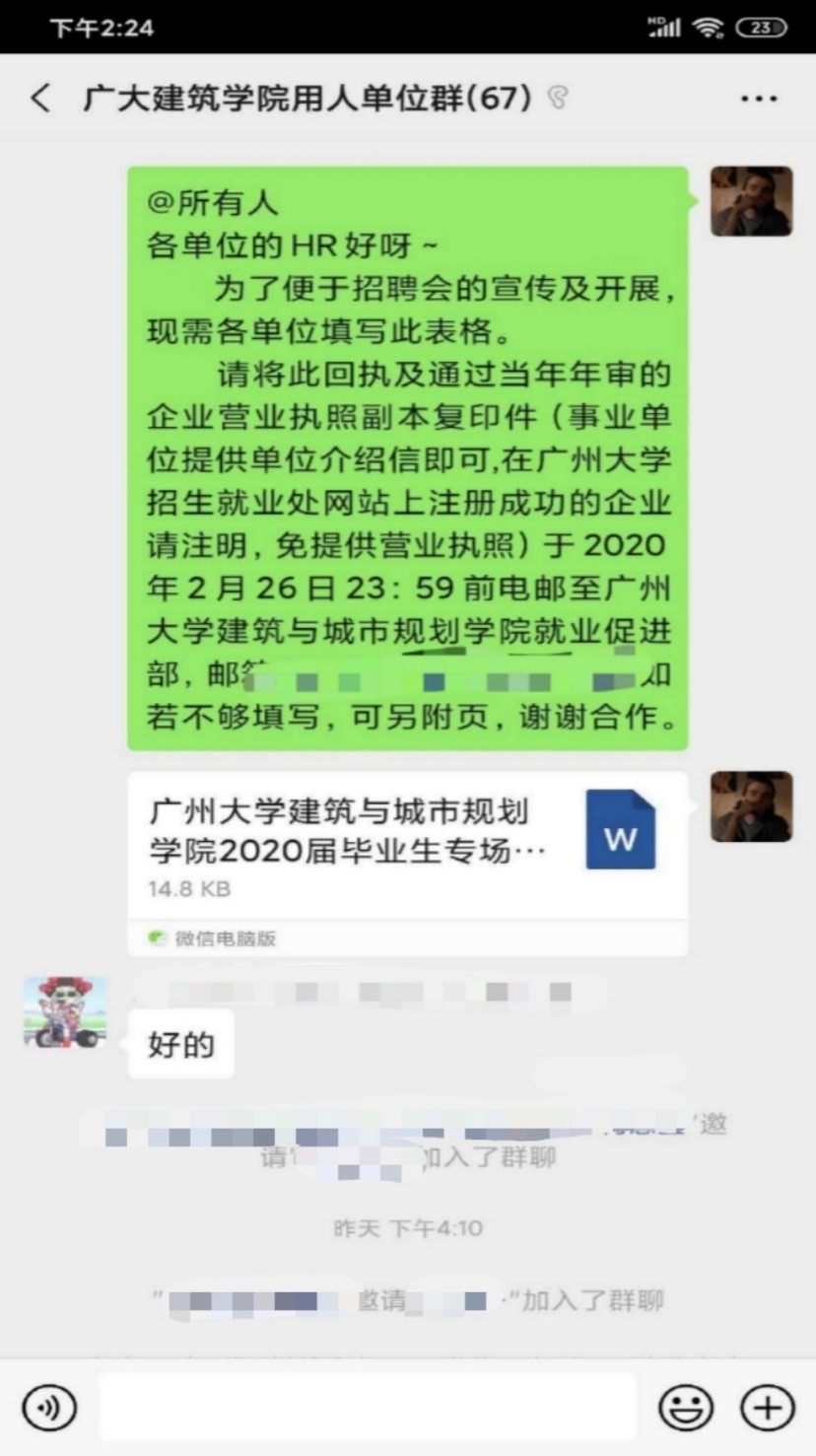 4.各公司按照编号顺序将招聘资料和群二维码发送招聘群。(该阶段不允许提问)